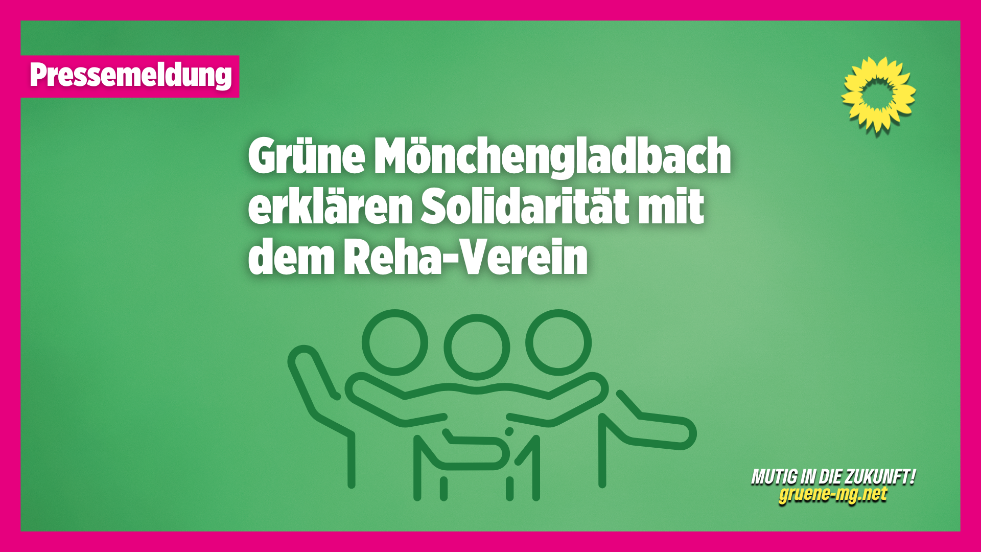 BÜNDNIS 90/DIE GRÜNEN Mönchengladbach erklären ihre uneingeschränkte Solidarität mit dem Reha-Verein in Mönchengladbach. Der Versuch, die Gemeinnützigkeit des Vereins infrage zu stellen, ist ein Angriff auf die Zivilgesellschaft unserer Stadt.