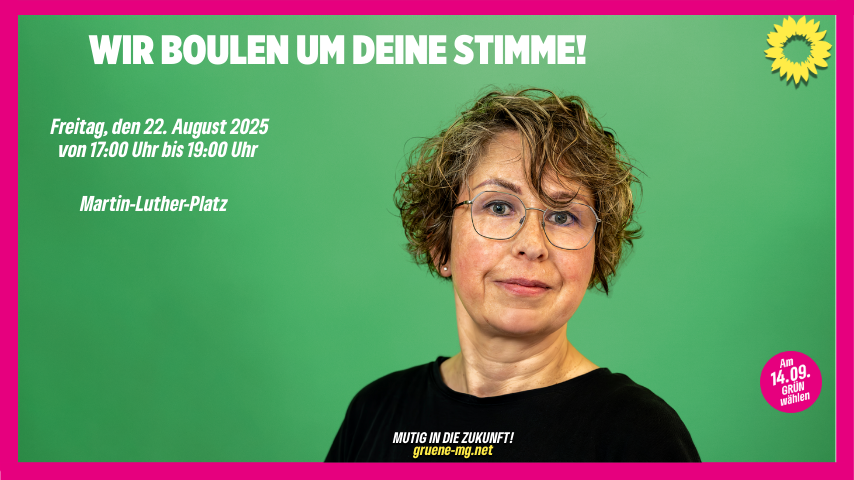 Am Freitag, den 22. August 2025, sind alle Wähler*innen von 17:00 Uhr bis 19:00 Uhr zum Boule-Spielen auf dem Martin-Luther-Platz im Zentrum von Odenkirchen eingeladen. Der Spieleklassiker aus Frankreich bietet die Möglichkeit für einen interessanten Austausch in angenehmer Atmosphäre. Getränke und kleine Snacks lockern die Runde auf.